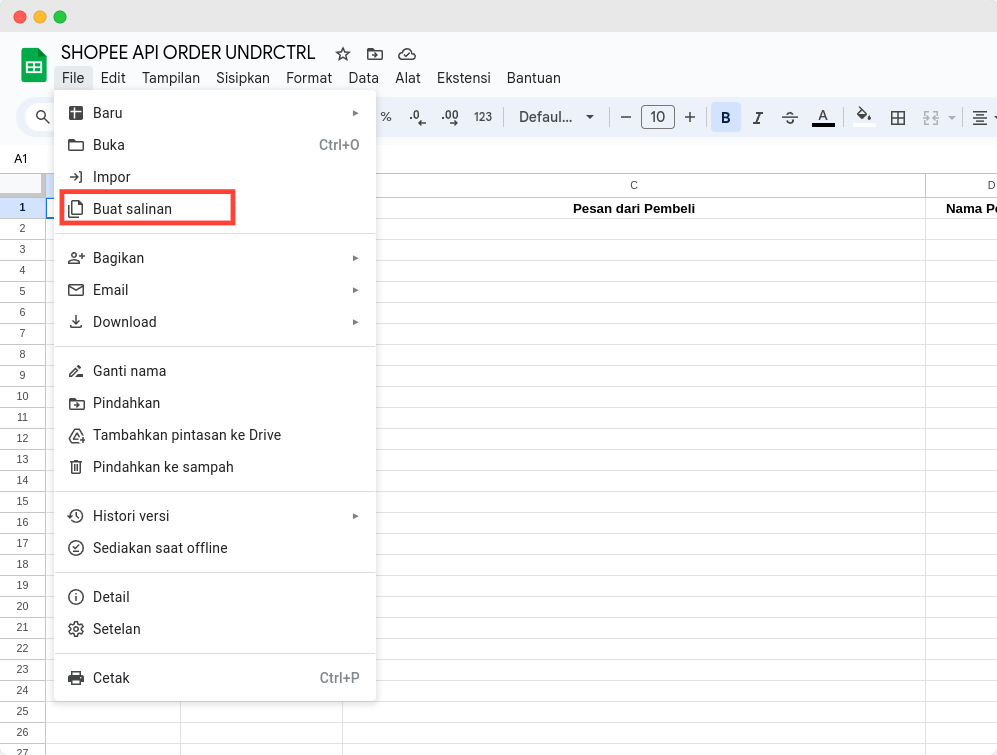 Salin template yang sudah kami sediakan di Template Google Sheets.