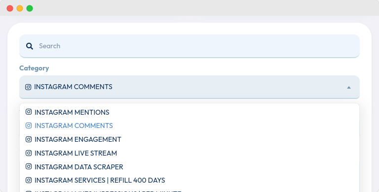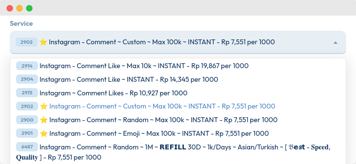 Pada form order, cari kategori “Instagram” dan pilihInstagram Comments.