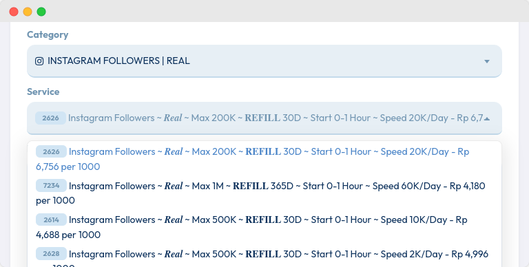 Pilih jenis followers yang Anda inginkan. Kami menyediakan berbagai opsi untuk memenuhi kebutuhan berbeda.