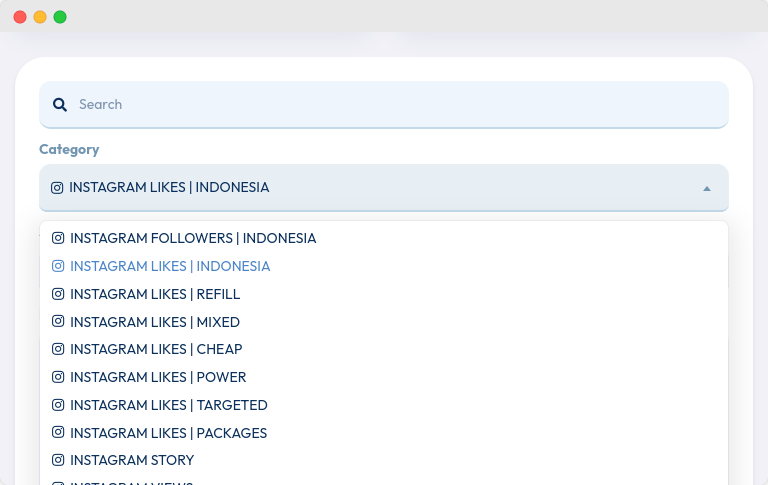 Pada form order, cari kategori “Instagram” dan pilihInstagram Likes.