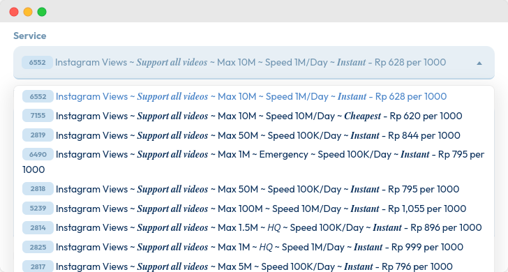 Pada form order, cari kategori “Instagram” dan pilihInstagram Views.
