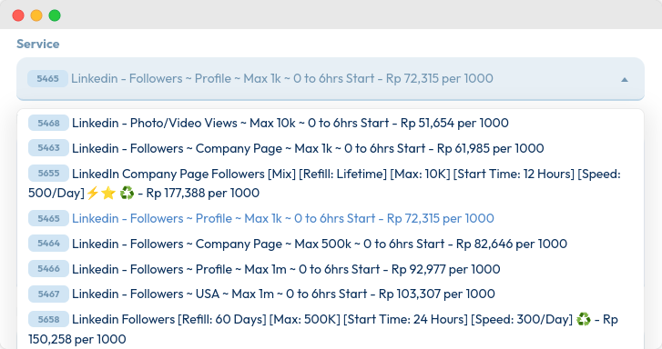 Pada form order, cari kategori “LinkedIn” dan pilihLinkedIn.