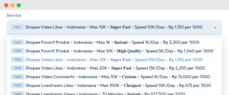 Pilih jenis likes yang Anda inginkan. Kami menyediakan berbagai opsi untuk memenuhi kebutuhan berbeda.