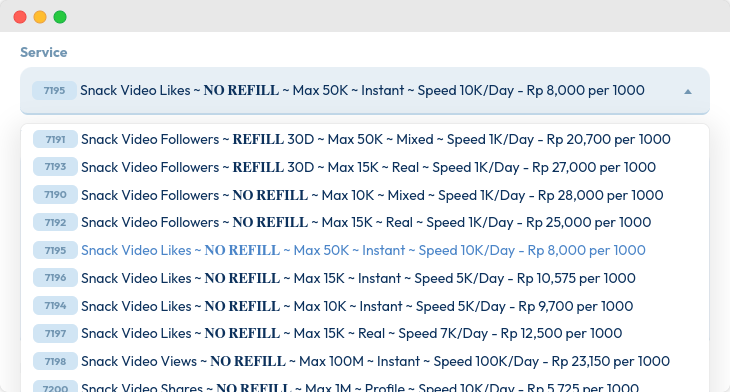 Pada form order, cari kategori “Snack Video” dan pilihSnack Video Likes.