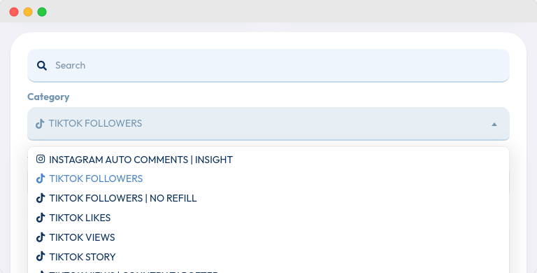Pada form order, cari kategori “TikTok” dan pilihTikTok Followers.