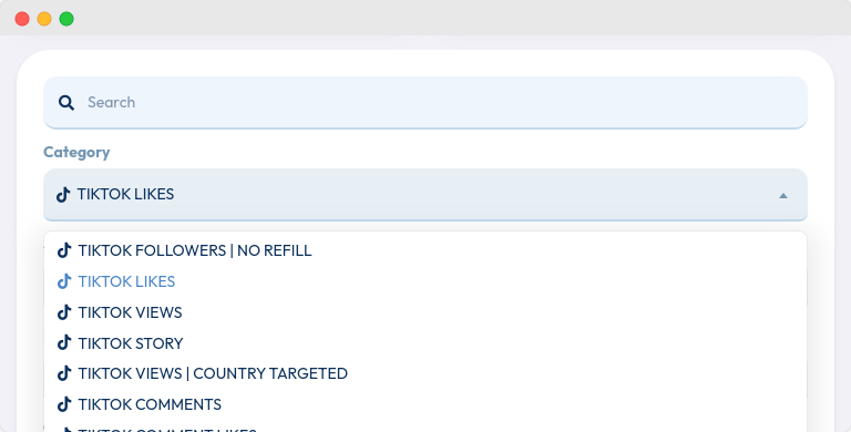 Pada form order, cari kategori “TikTok” dan pilihTikTok Likes.