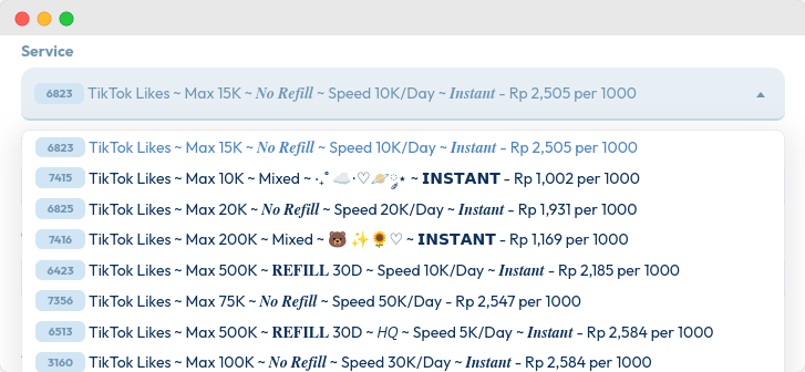 Pilih jenis likes yang Anda inginkan. Kami menyediakan berbagai opsi untuk memenuhi kebutuhan berbeda.