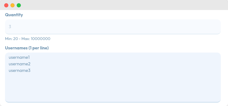 Masukkan username yang Anda inginkan, satu per baris sesuai dengan jumlah yang diinginkan.