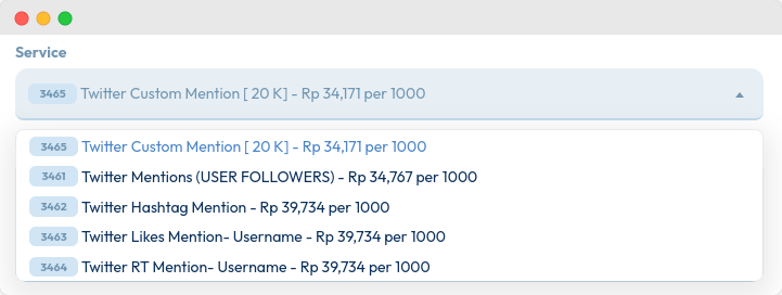 Pada form order, cari kategori “X Twitter” dan pilihX Twitter Mentions.