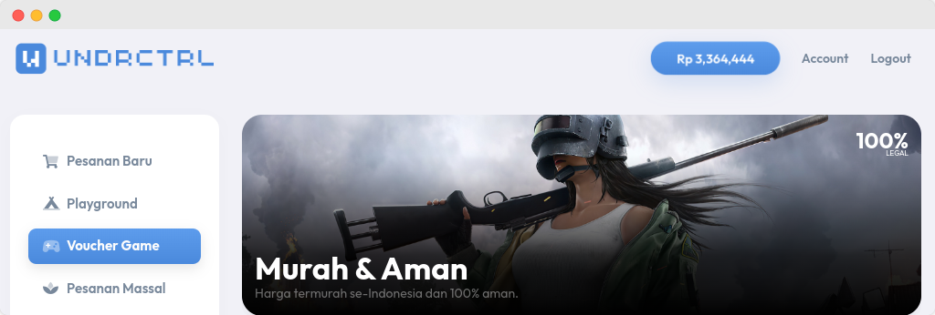 Setelah login, Anda akan diarahkan ke dashboard utama UNDRCTRL.2. Pilih menu voucher
