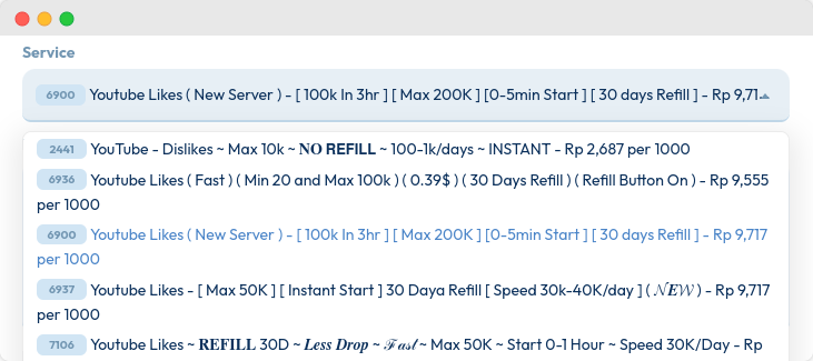 Pada form order, cari kategori “Youtube” dan pilihYoutube Likes.