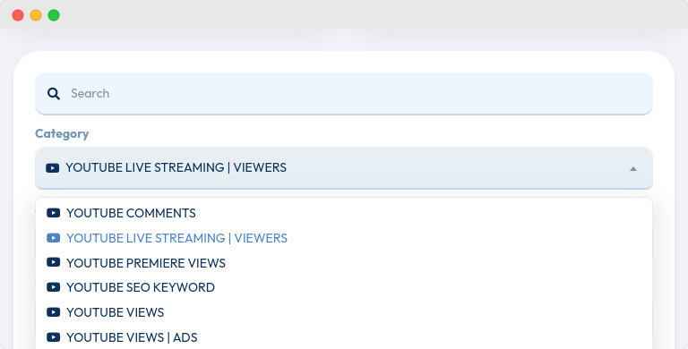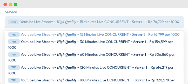 Pilih jenis livestreaming views yang Anda inginkan. Kami menyediakan berbagai opsi untuk memenuhi kebutuhan berbeda.